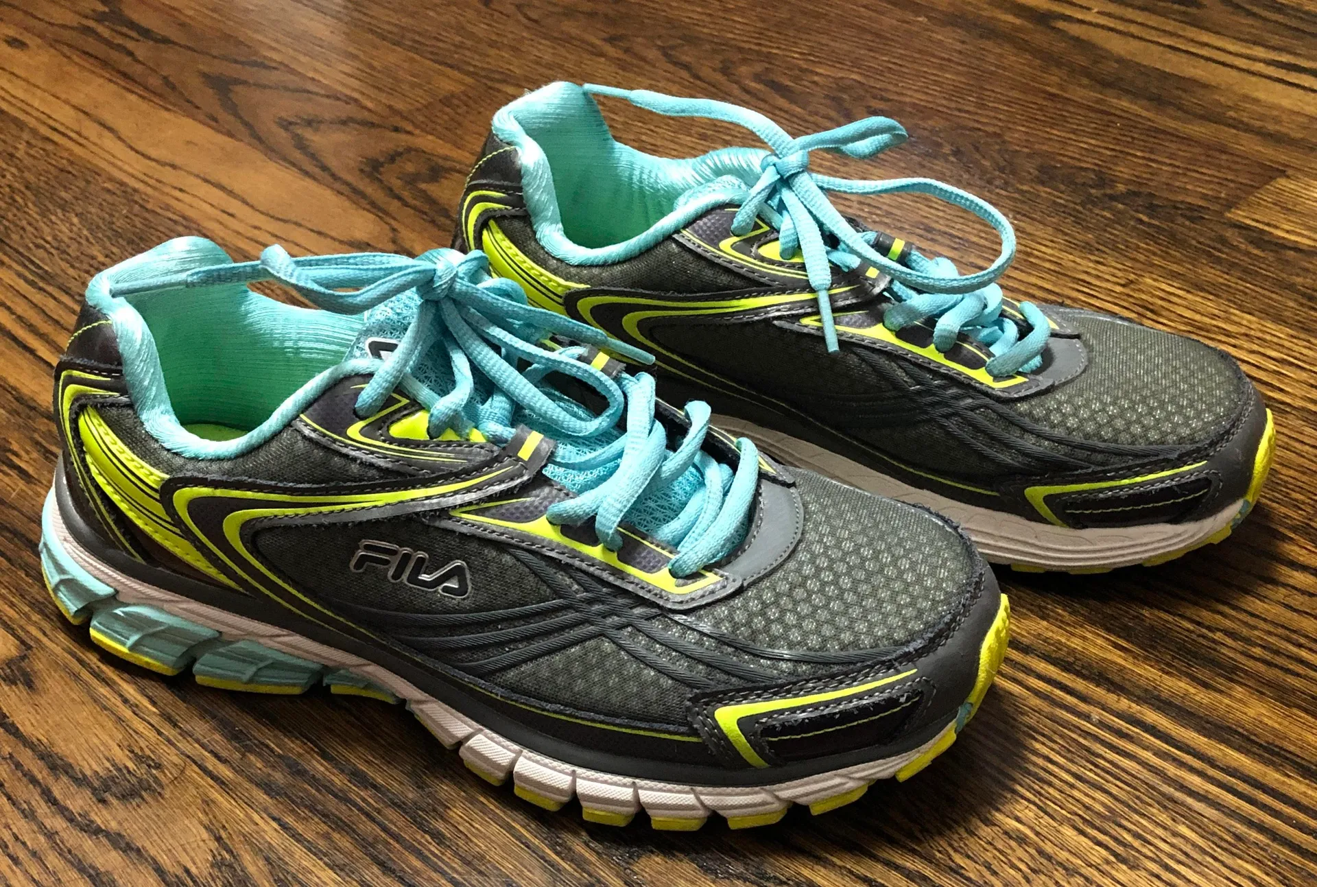 FILA CoolMax Memory Advance Sneakers Size 7.5 women’s Grey, Safety green/yellow, mint blue, & deep p... Show more