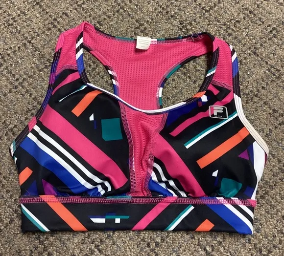 Fila Sport Performance Racerback Pink Black Blue White Sports Bra Size XS Padded Cups Preowned, EUC,... Show more