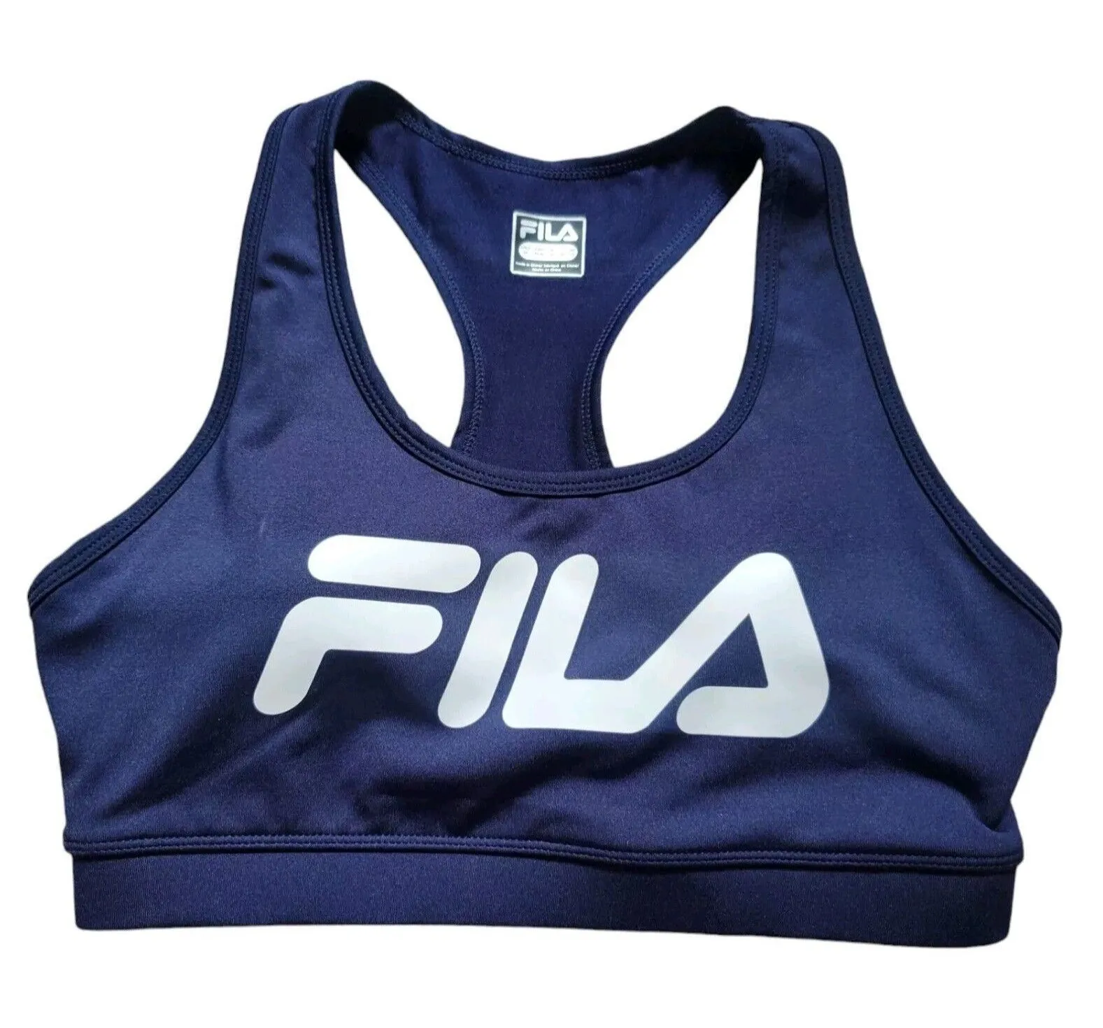 This Fila Sports Bra is designed for women who are into high-impact activities like running and CrossFit. The blue bra features the brand's logo and is sized medium. It provides high support and is perfect for activewear. The sports bra is made for women's department and is suitable for various occasions. It is a comfortable piece of clothing that offers great support. The bra is perfect for athletes who are looking for a stylish and functional sports bra.