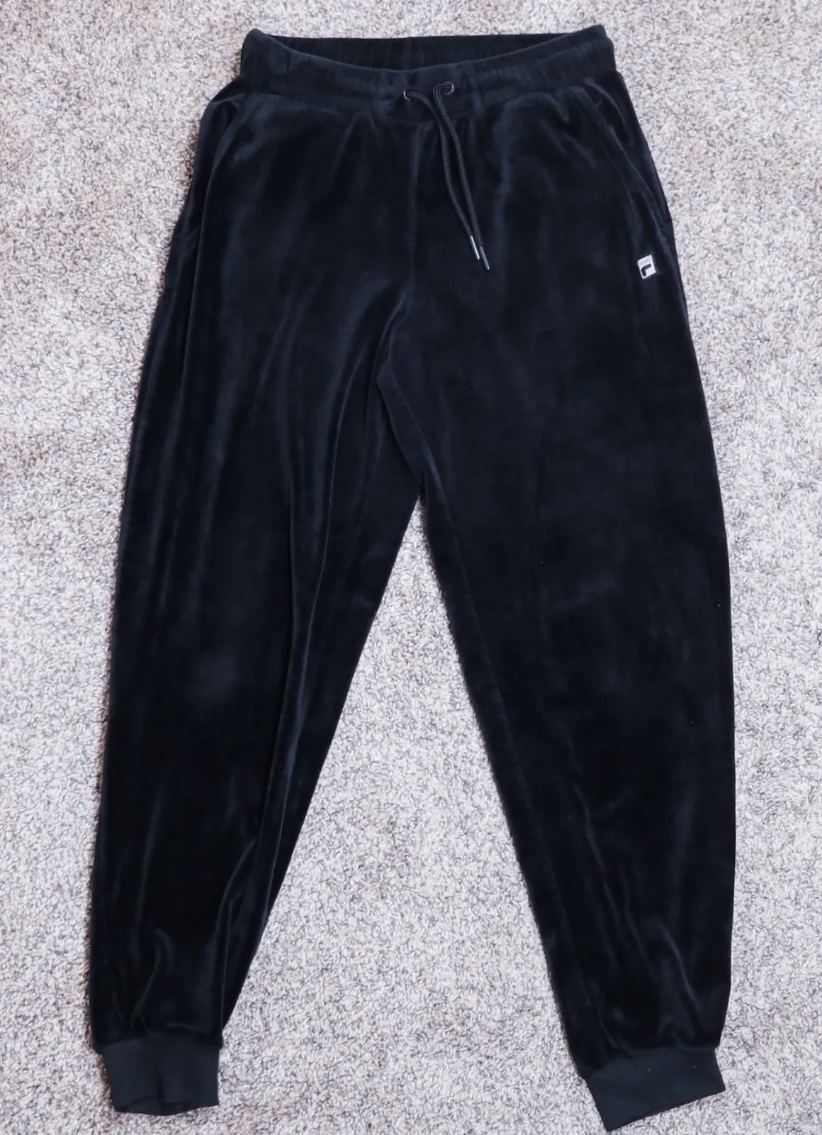 Fila velour jogger pants in black. Elastic waistband with adjustable drawstring for a personalized f... Show more