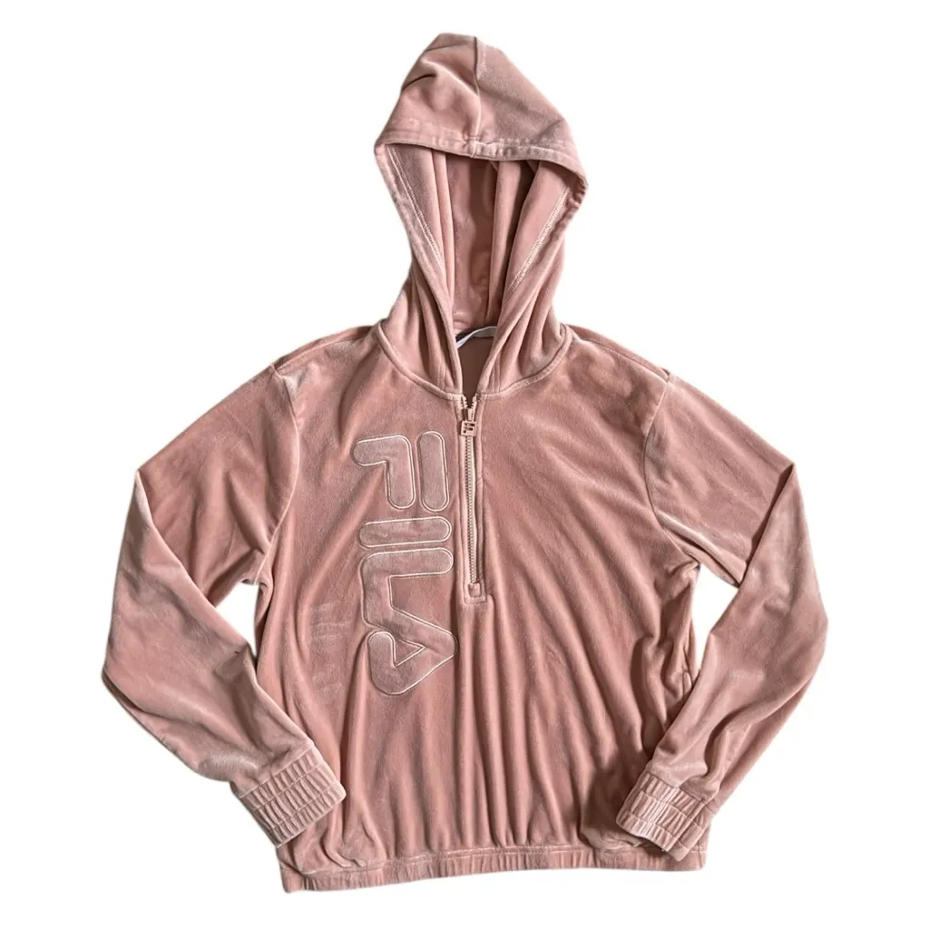 Authentic Fila zip-up hoodie track/sweatsuit jacket Soft velour fabric with plush feel Embroidered /... Show more