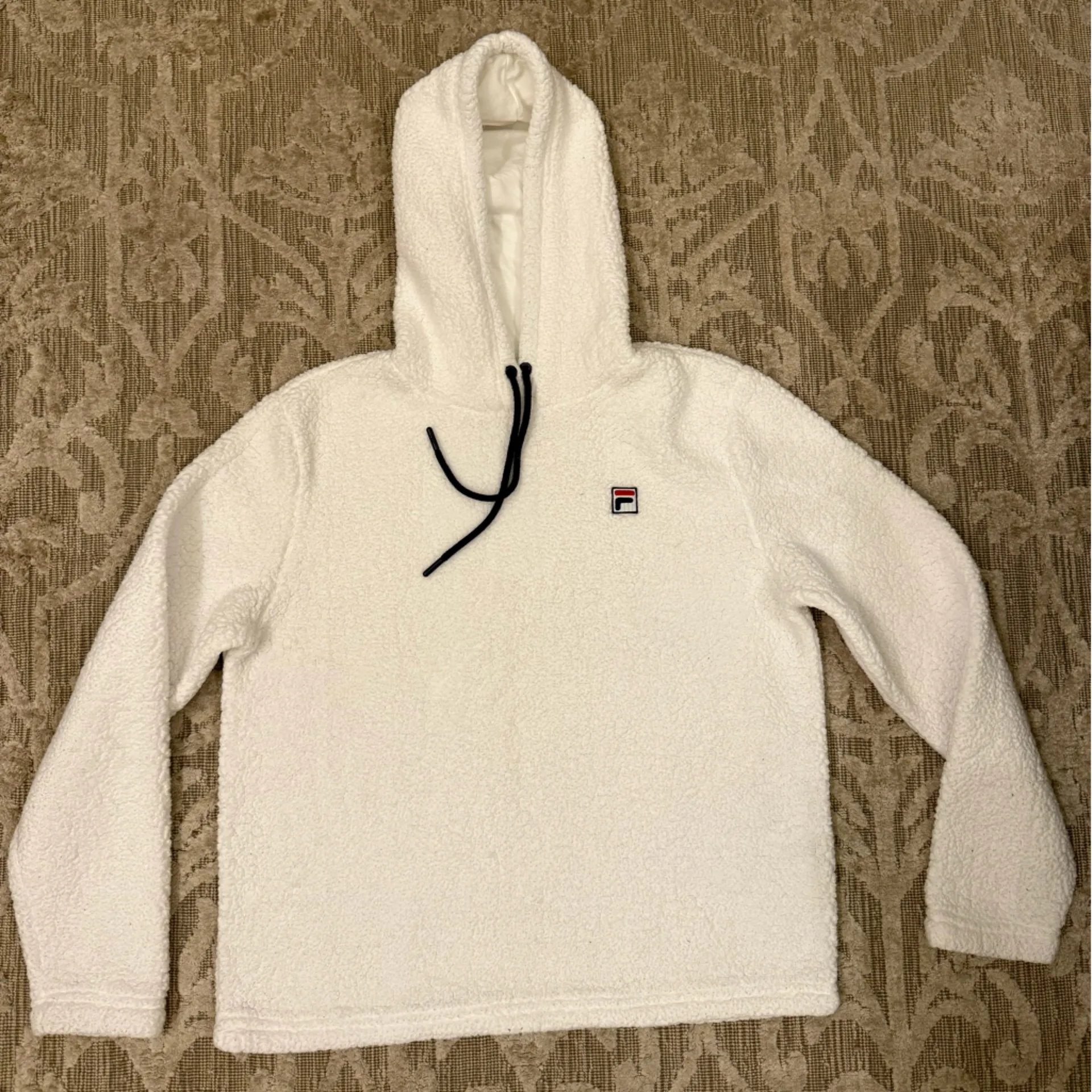 Super worm and cozy white fuzzy Fila hoodie sweater size large 🤍 Ideal for everyday / casual wear... Show more