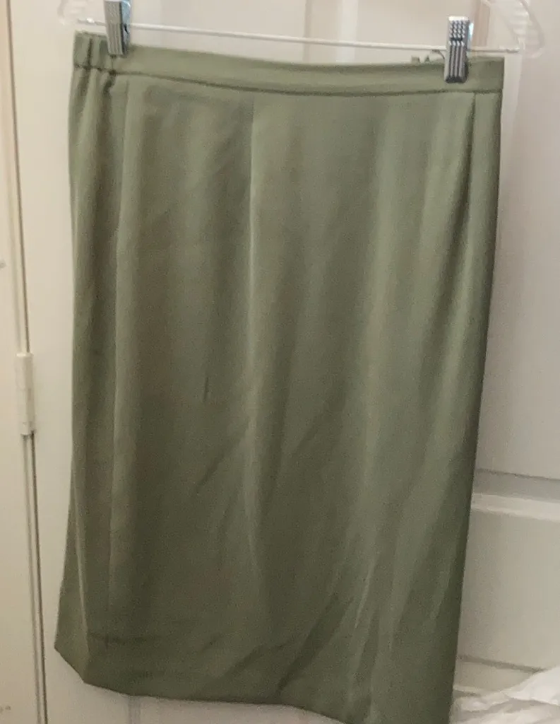 This is a Ladies’ Lined skirt with a touch of elastic in the waistline area for extra comfort, Size: 12. Made in Philippines — Shell: 100% polyester; Lining: 100% acetate. SMSE006