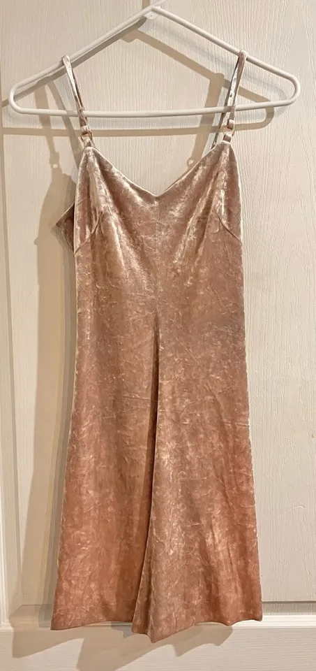 Adjustable straps with golden hardware Dusty pink / champagne color Mini style Zips in the back w... Show more