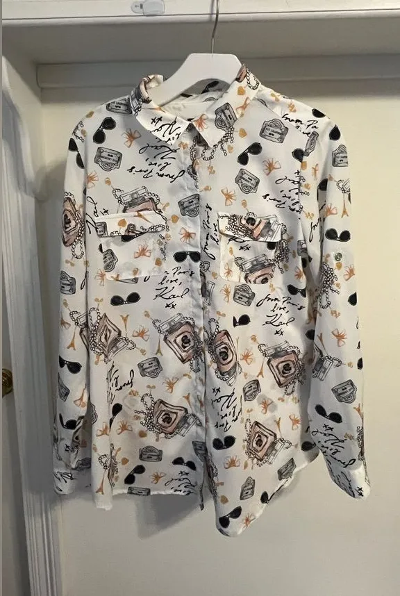 FINAL PRICE Karl Lagerfeld White Graphic Shirt Size M - $28 - From Hannah