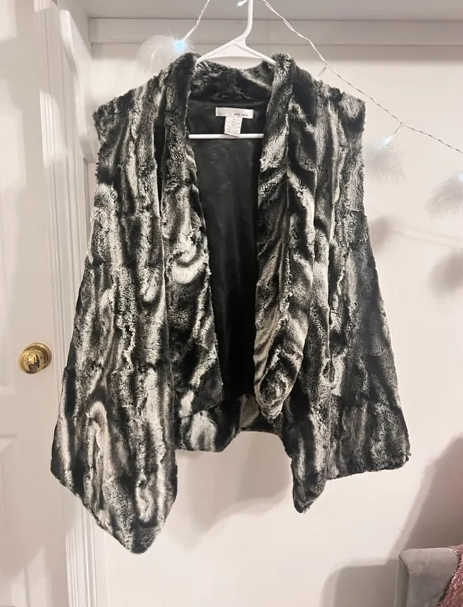 FINAL PRICE WD-NY FAUX FUR grey & black vest Size L - $13 - From Hannah