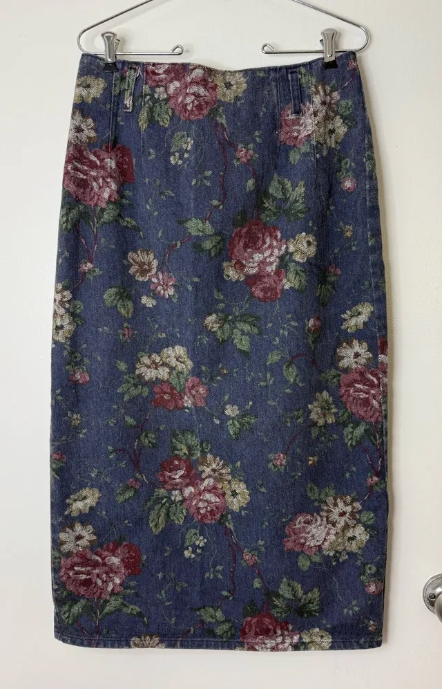 Fiorlini vintage Blue, pink floral denim, midi maxi western cottage skirt S Blue - $40 - From Caprice