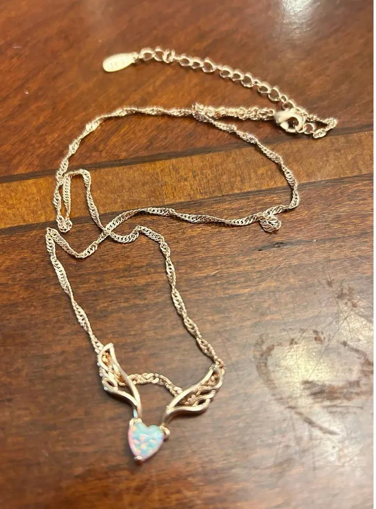 Fire opal 18k rose gold plated guardian angel pendant necklace 16 inch h63 - $30 - From Dorota
