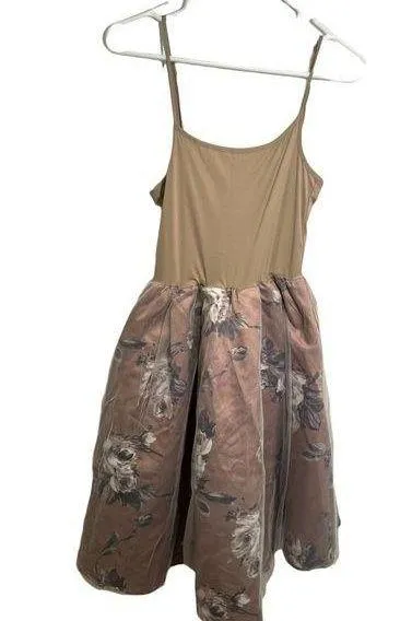 Great condition. Unbranded. Fit & flare dress. Solid beige camisole top. Tulle skirt, beige with white and gray floral. Adjustable straps. No size/material tag, my best guess is an XS; please see measurements to ensure proper fit. Pit to pit laying flat 13” Shoulder to hem 40”. All measurements are approximate and taken lying flat. Smoke free home. No trades, offers welcome.