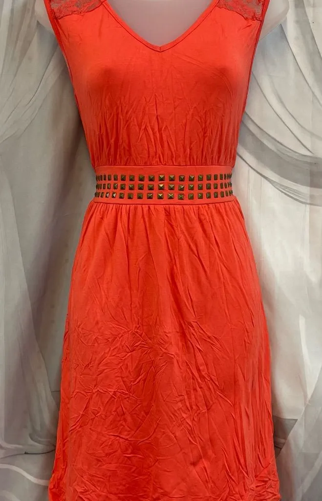 Fit Flare Lace Metal Rivets Ya Los Angeles Elegant Orange Sleeveless Sun Dress M Size M - $23 - From Trend