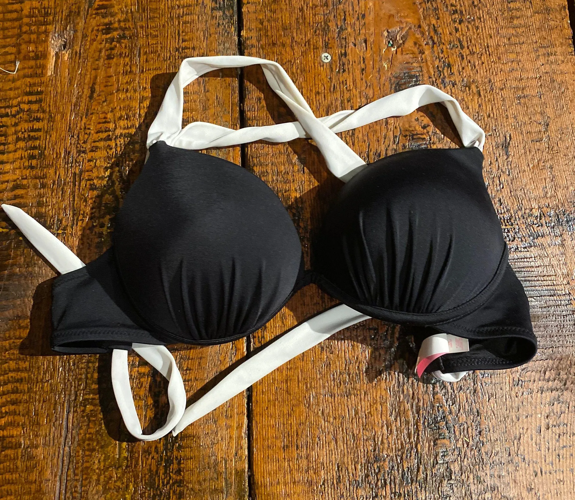 Lightly worn Victoria’s Secret push up bikini top size 34C. Straps cross in the back and then tie so... Show more