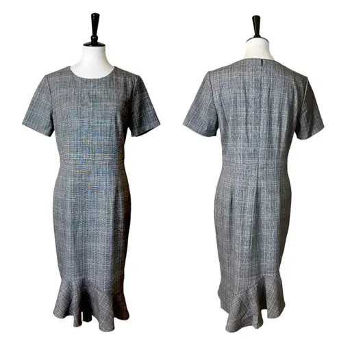 Tahari Dress Sheath Ruffle Midi Hem Short Sleeve Gray Plaid New Women’s Size 8 Style Details • Cla... Show more