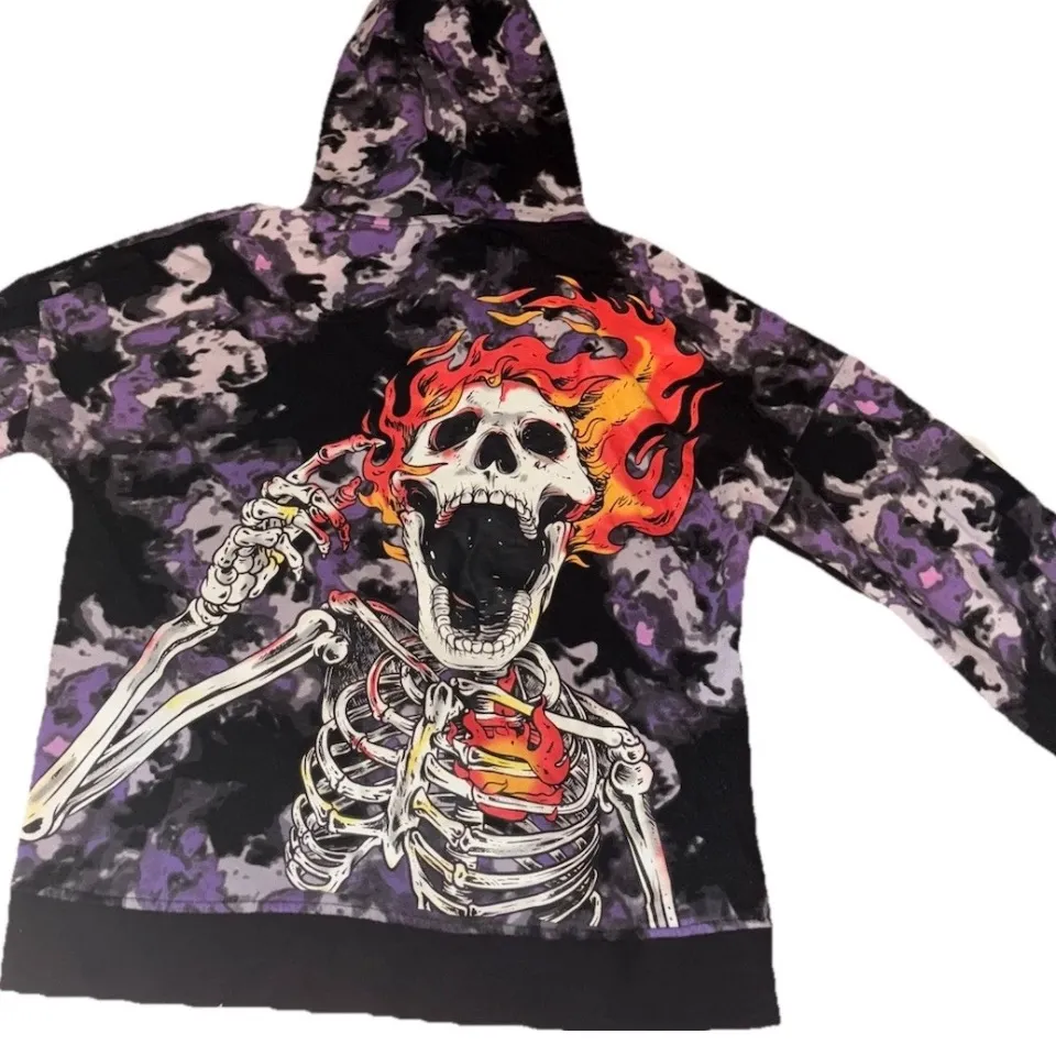 Flaming skull camo purple hoodie broken promises rare xs Black - $33 - From Lindsey
