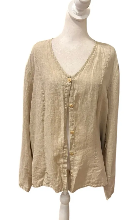 FLAX Beige Cream Button Up Top 100 Percent Linen Women's Size Large Lagenlook. - $43 - From Jessica