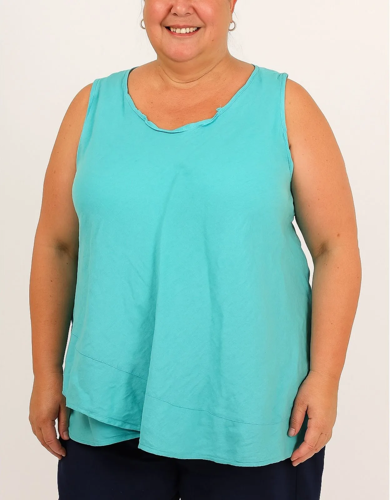 VGUC FLAX Linen Tank Top Sleeveless Aqua Blue Women's Size 3G (24-26). Effortless linen top with a r... Show more