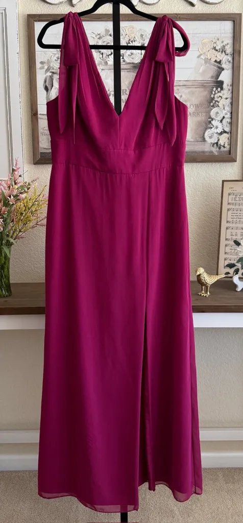 Dessy Group Maxi Dress Size 16 Merlot Deep V Neck Floor Length Wedding Guest Approx. Measurements Pit to Pit: 19” relaxed / 22” stretched Full Length: 60” Slit: 22” Dessy Group Size 16 100% Polyester shell / 100% Polyester lining Deep v neckline with tie shoulders Maxi length with approx. 22” slit Back zipper closure Fully lined Preowned. In excellent condition. Clean, with no flaws or damage. Packaged with care. Ships same or next day. Offers welcome. Bundle and save! ladybugthreads WBBBB