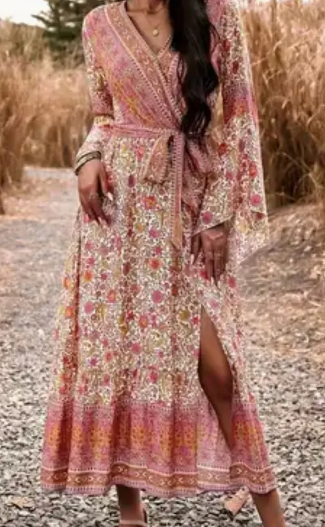Floral Bohemian Orange, Cream, Aqua, Gold & Pink Maxi Dress Size L - $34 - From Rosanna