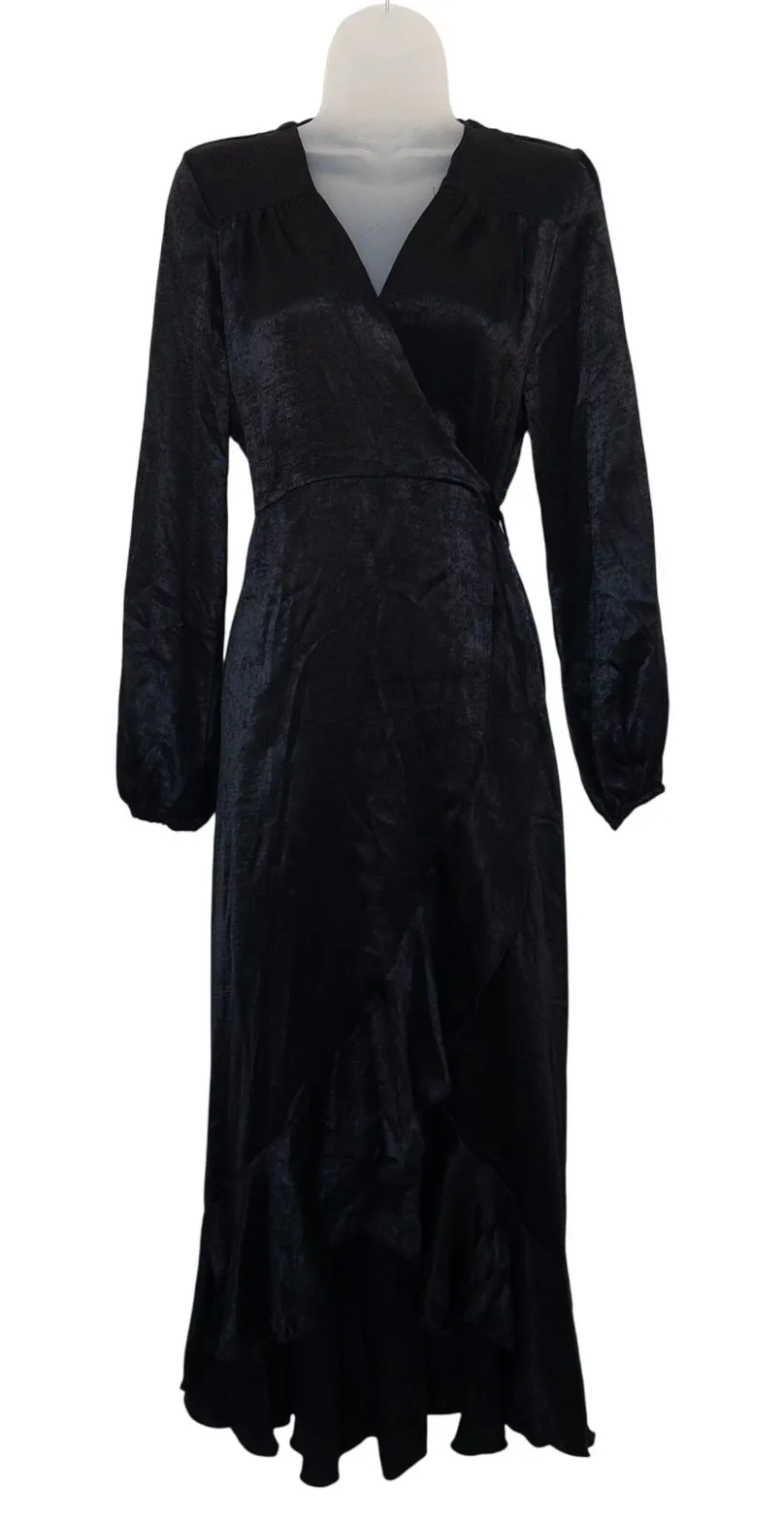 Flounce London Womens Dress Size 8 Black Satin Wrap Maxi Whimsigoth Witchy Romantic Elegant and dra... Show more