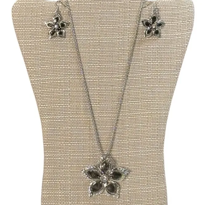 All orders shipped next business day. Flower Necklace Earring Set Silver Tone Rhinestone Floral Je... Show more