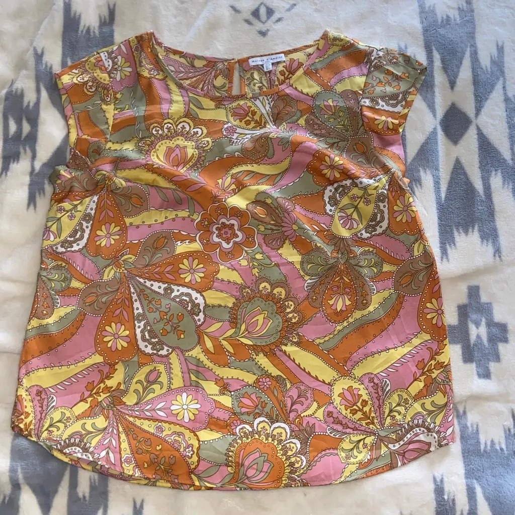 FLOWER POWER PAISLEY BLOUSE Maison d’ Amélie Orange Pink Yellow Sleeveless Size L - $22 - From Brandi