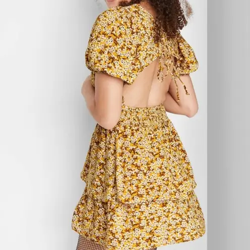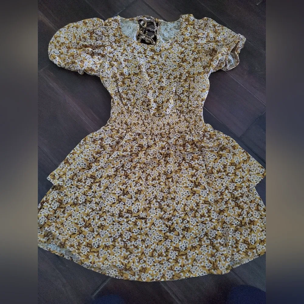 Flowery yellow flirty dress with puff sleeves size small by wild fable super cut 6-16