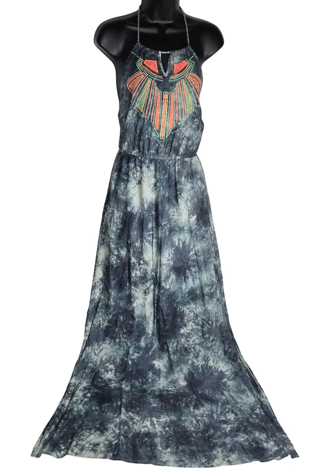 Flying Tomato Maxi Halter Dress Tie Dye Boho Tribal Neon Embroidered Tassel Small Size: S In great... Show more