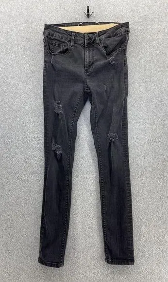 ZARA Women's Black Denim Jeans Mid Rise Slim Distressed Size 6