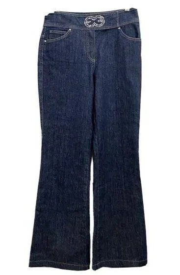 ESCADA Crystal Embellished Logo Front High Rise Bootcut Jeans. Size 36. Pre-owned in great shape. Se... Show more