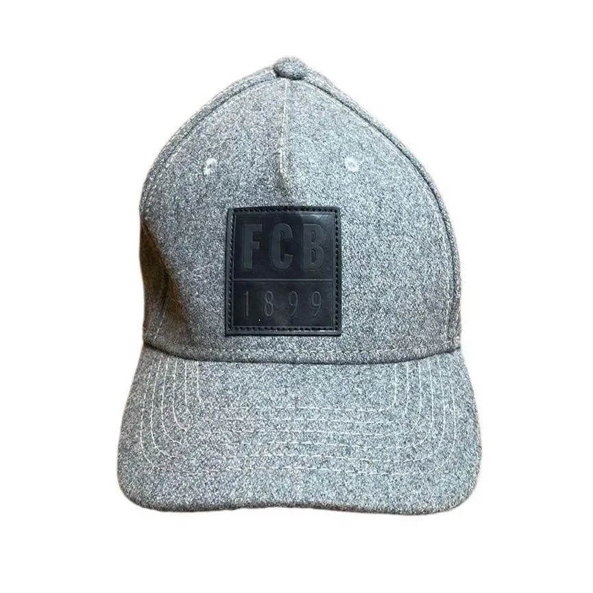 Football Club Barcelona Hat Grey and black wool and leather Good condition. Some wear on the adjust... Show more