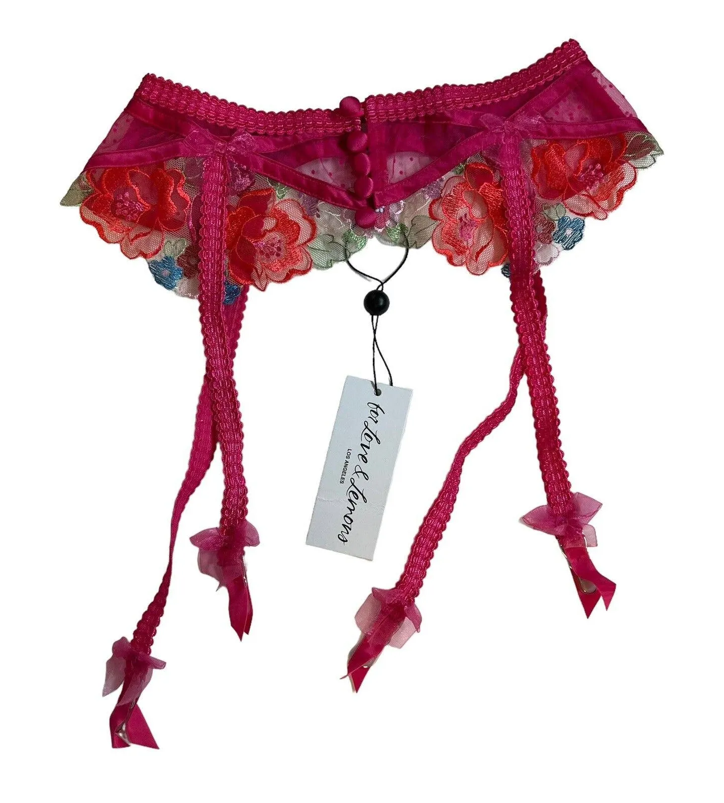 For Love & Lemons Fuschia Luella Garter Belt Paneled flocked dot, scallop elastic straps, organza b... Show more