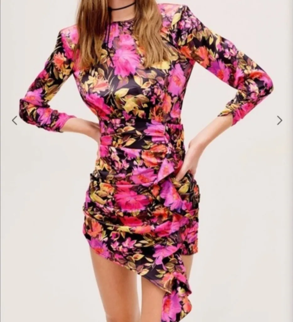 Sz XXS Beautiful long sleeve mini dress. Side ruffles on the skirt and partially open back. Perfect... Show more