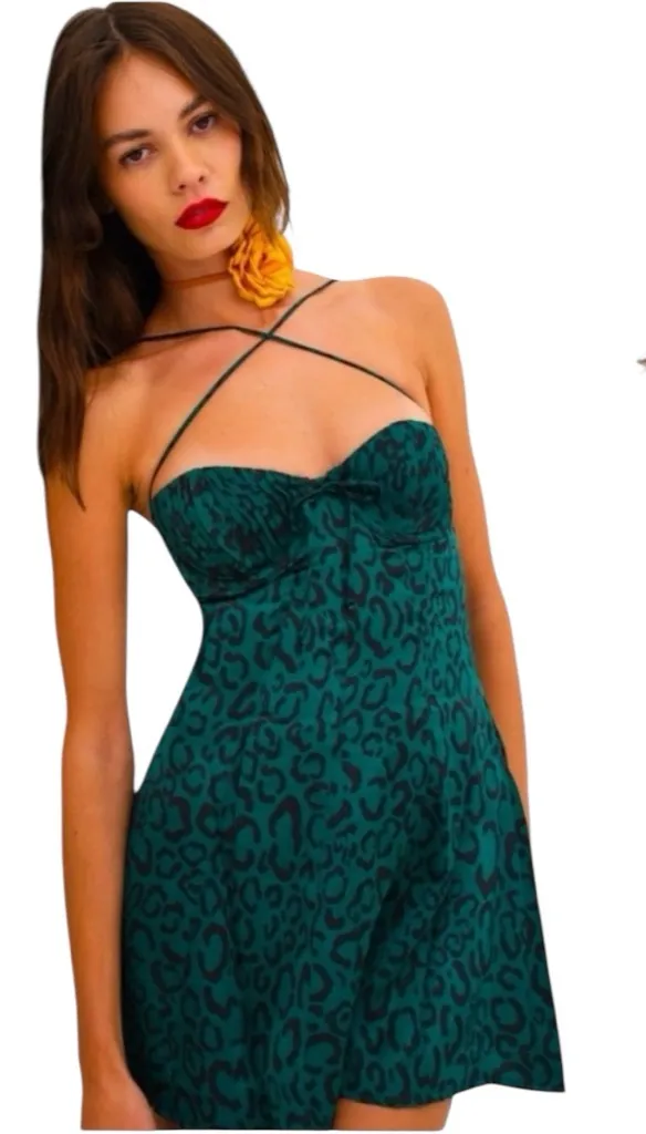 NWT For Love & Lemons Wendy Mini Dress Women’s Animal Print Green Size Small Lined. Adjustable Stra... Show more