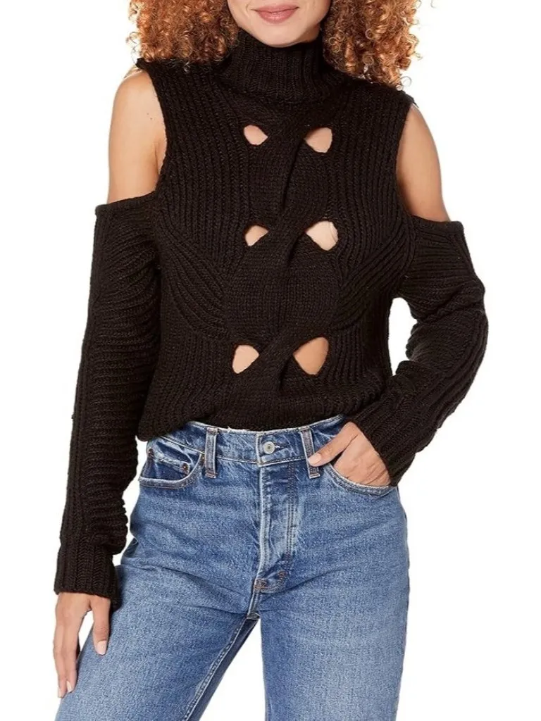 For Love & Lemons Keke Cutout Turtleneck Sweater – Black Edgy and fashion-forward, this For Love &... Show more