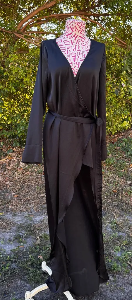 For Love & Lemons x Jaime King La Lydia Black Satin High Slit Wrap Dress Robe Size S Glam Chic, preo... Show more