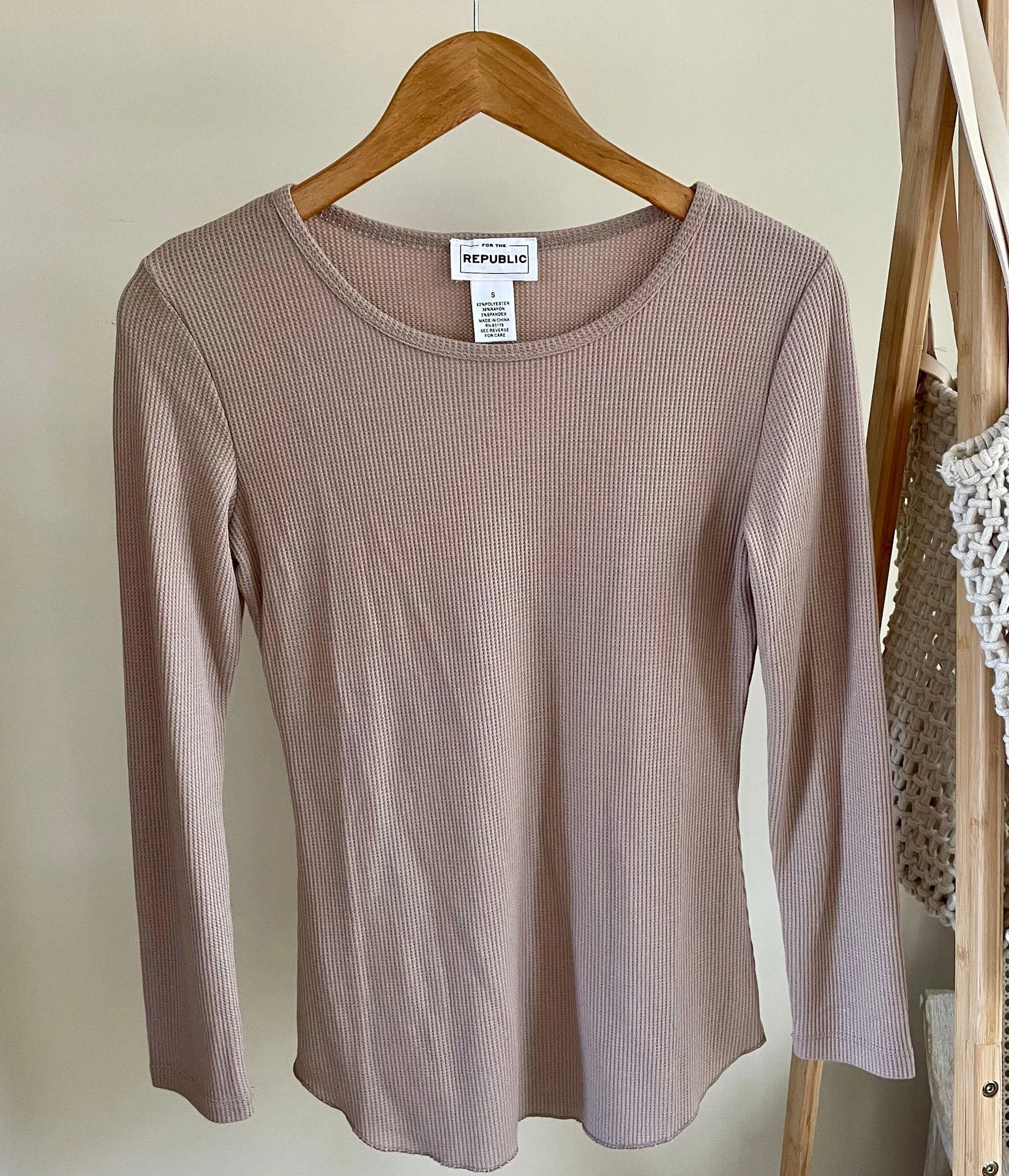 FOR THE REPUBLIC Waffle Knit Thermal Long Sleeve Top in Blush Taupe - S - $25 - From Nat
