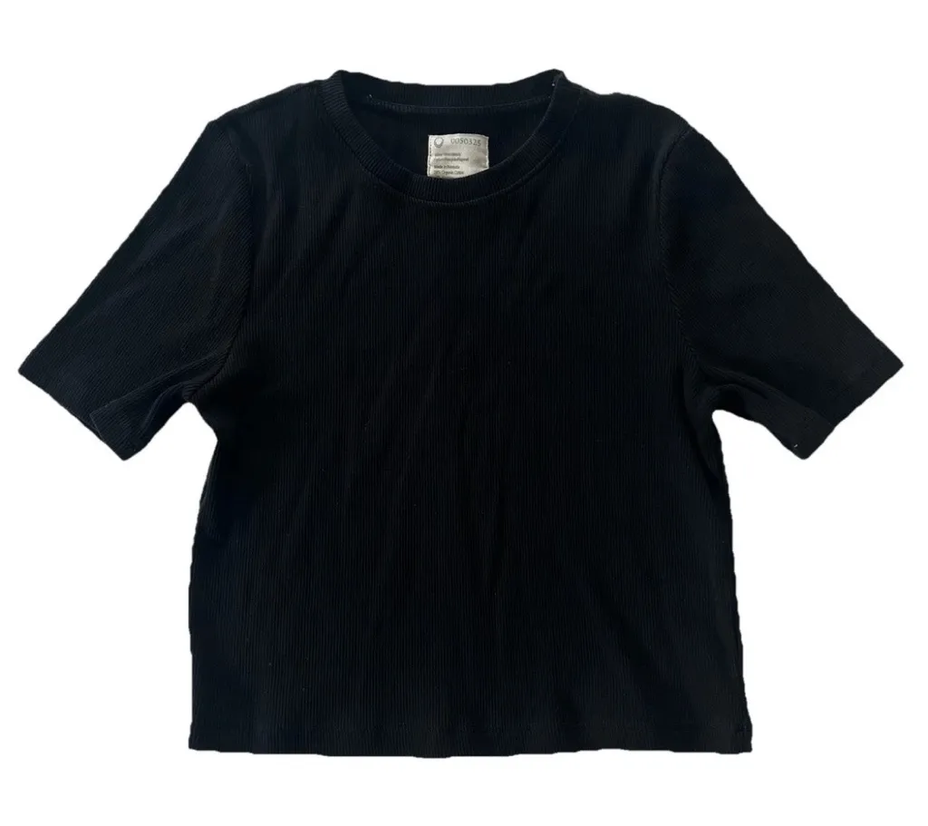 Fordays Organic Cotton Women’s Ribbed Crop Top Shirt L Black Crewneck Minimalist Excellent Pre-Owned Condition- No holes, stains, or rips (see photos for details) Size: Women's Large (See photos for measurements) - Organic Cotton / Spandex - Stretch ribbed blouse - Style Profiles: casual basics, layering shirt, sustainable, eco friendly, eco conscious, slow fashion, ethical fashion, quiet luxury, capsule wardrobe, closet staple, timeless, lounge wear, loungewear, office wear, business casual, career wear Fast shipping- we ship out the next business day! Offers welcome! We are happy to answer your questions!