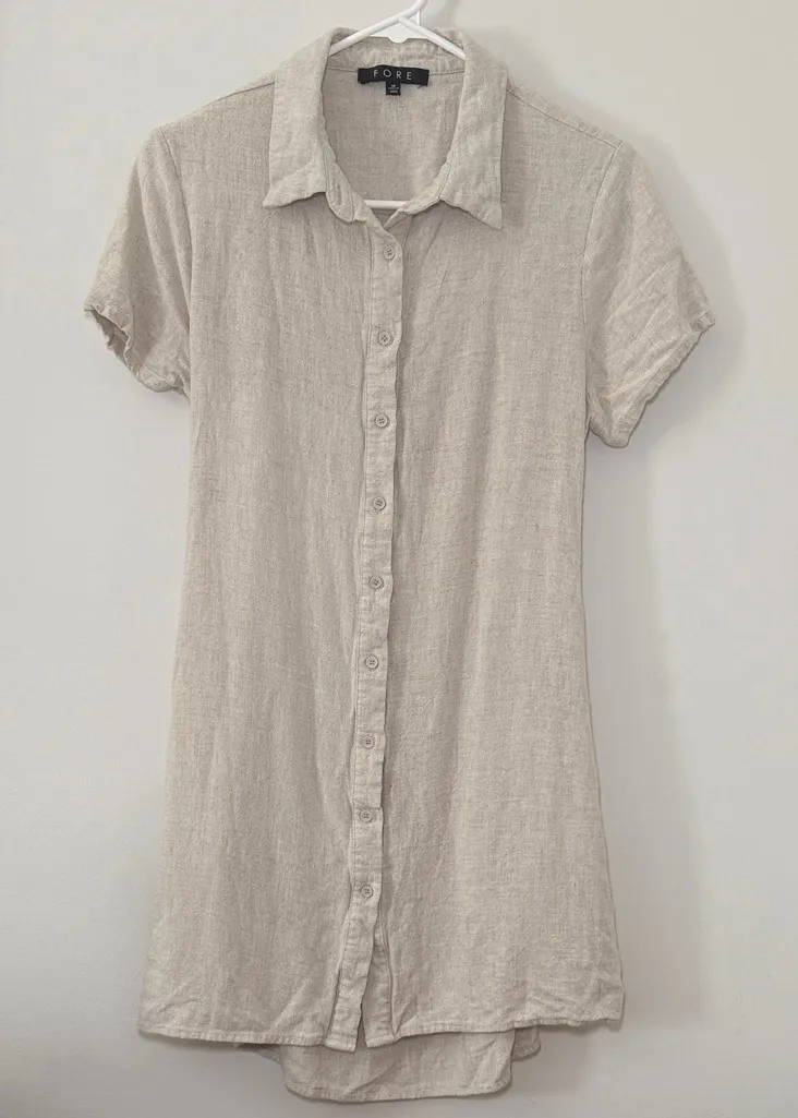 FORE Women's Beige Linen Button-Up Shirt Tunic Open Back Size Medium - $13 - From Kelly