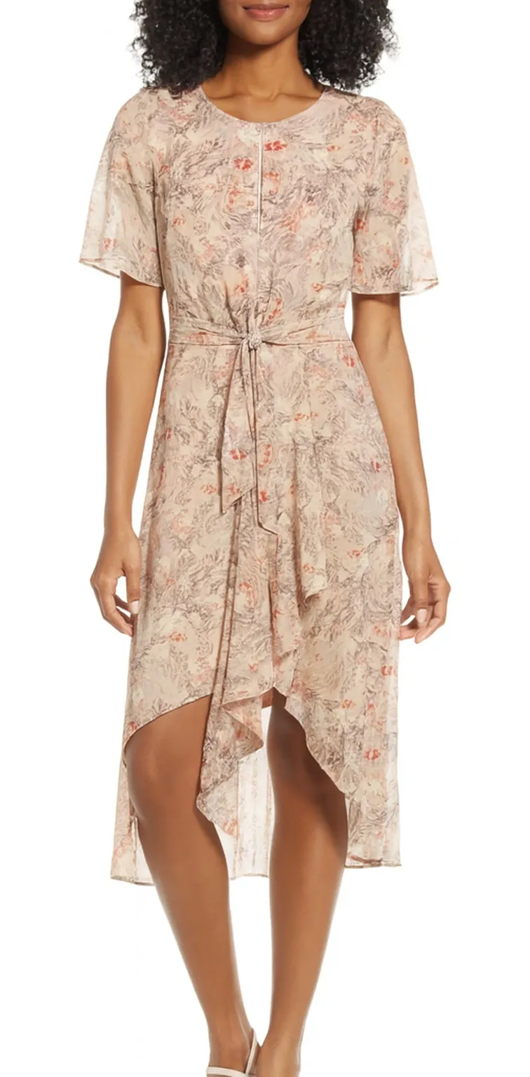 New with tags, sold at Nordstrom Dust Rose Combo Metallic fibers sweep down this floral dress with definite favorite frock potential. Hidden back zip closure. Bust 17 inches Waist 15 inches Length 45 inches Last picture is of the dress in a different color, shown for reference of fit. ::U