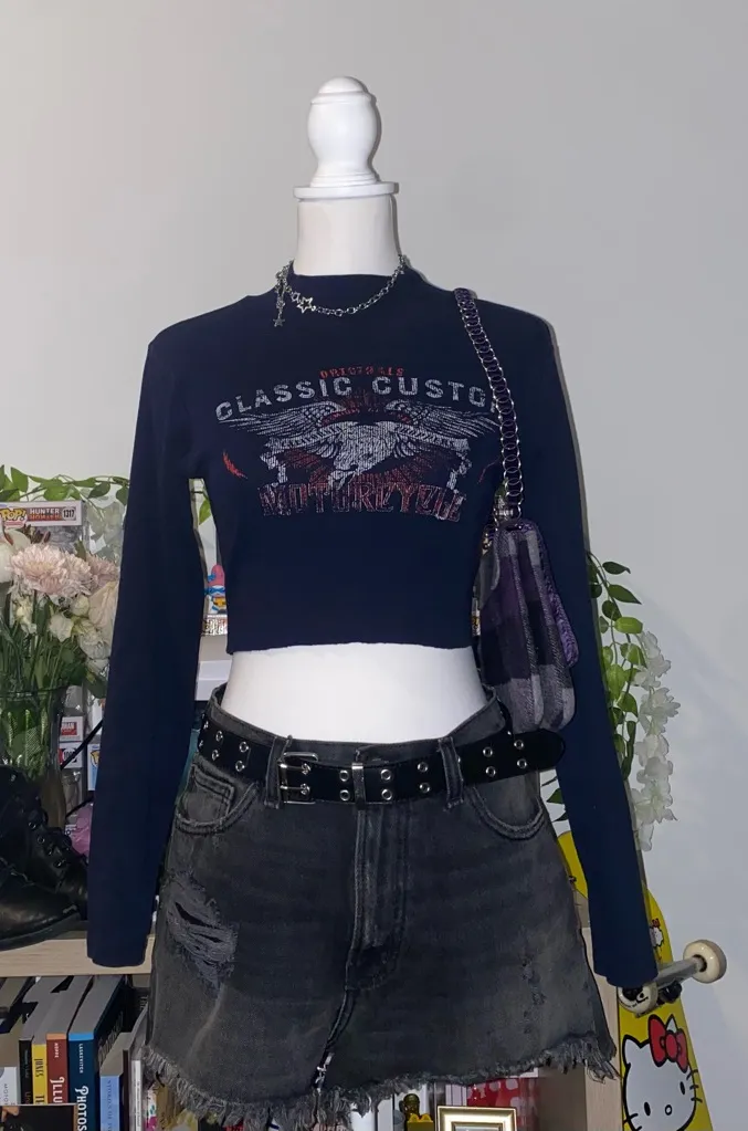 ♡✧゚ cute 2000s vintage style skater girl motorcycle long sleeve turtle neck crop top ✧・゚ ~ Size : M... Show more