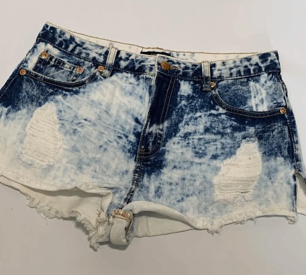 Excellent preloved condition cotton blend Forever 21 Acid Wash Distressed Denim Short Please see... Show more
