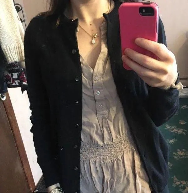 Forever 21 black cardigan, size is cut but fits like a small. Buttons are almost pearlized looking.... Show more