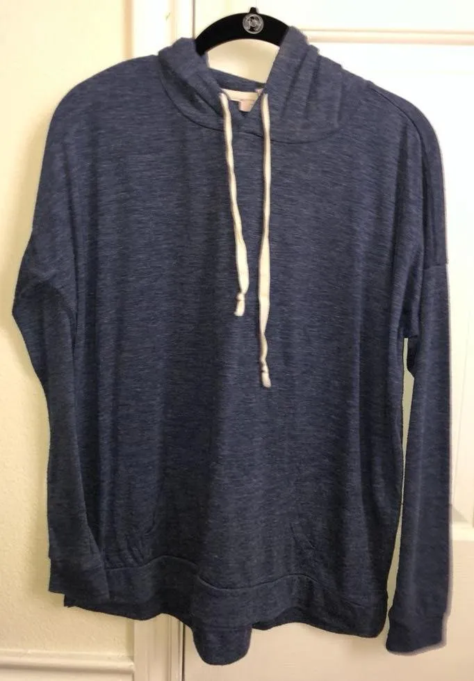 Faded navy hoody, very lightweight, in good condition, hood has drawstrings