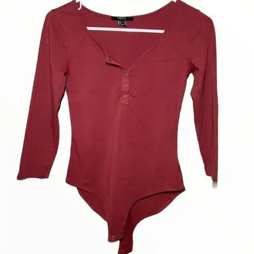 FOREVER 21 Button-Front Bodysuit Size: Small bodysuit round neckline, button placket 3/4 sleeve biki... Show more