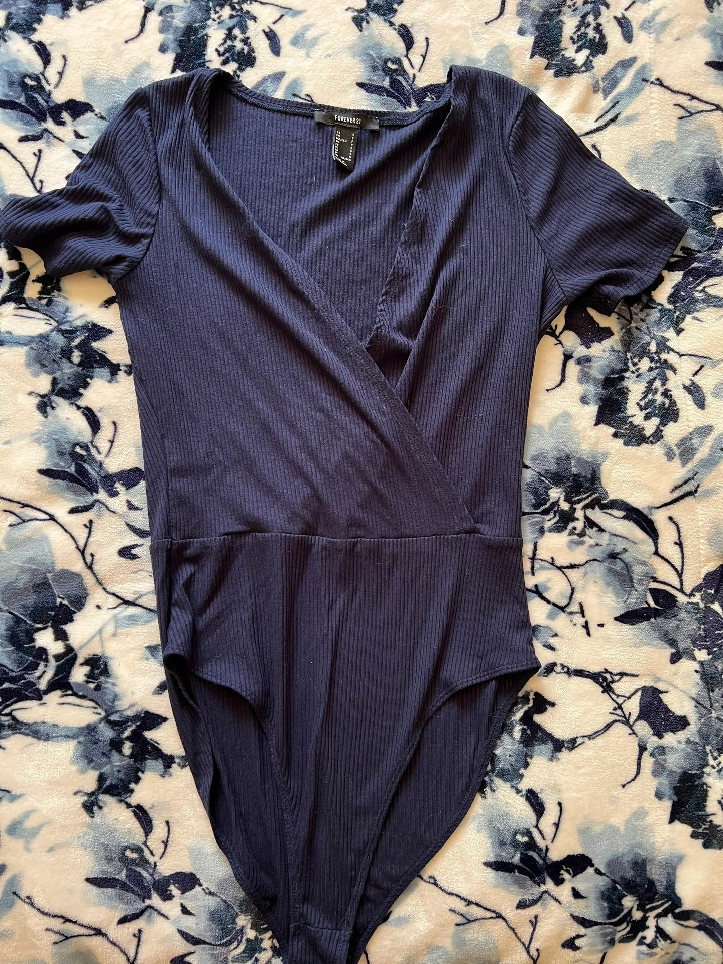Short sleeve navy forever 21 body suit. Very chest revealing!