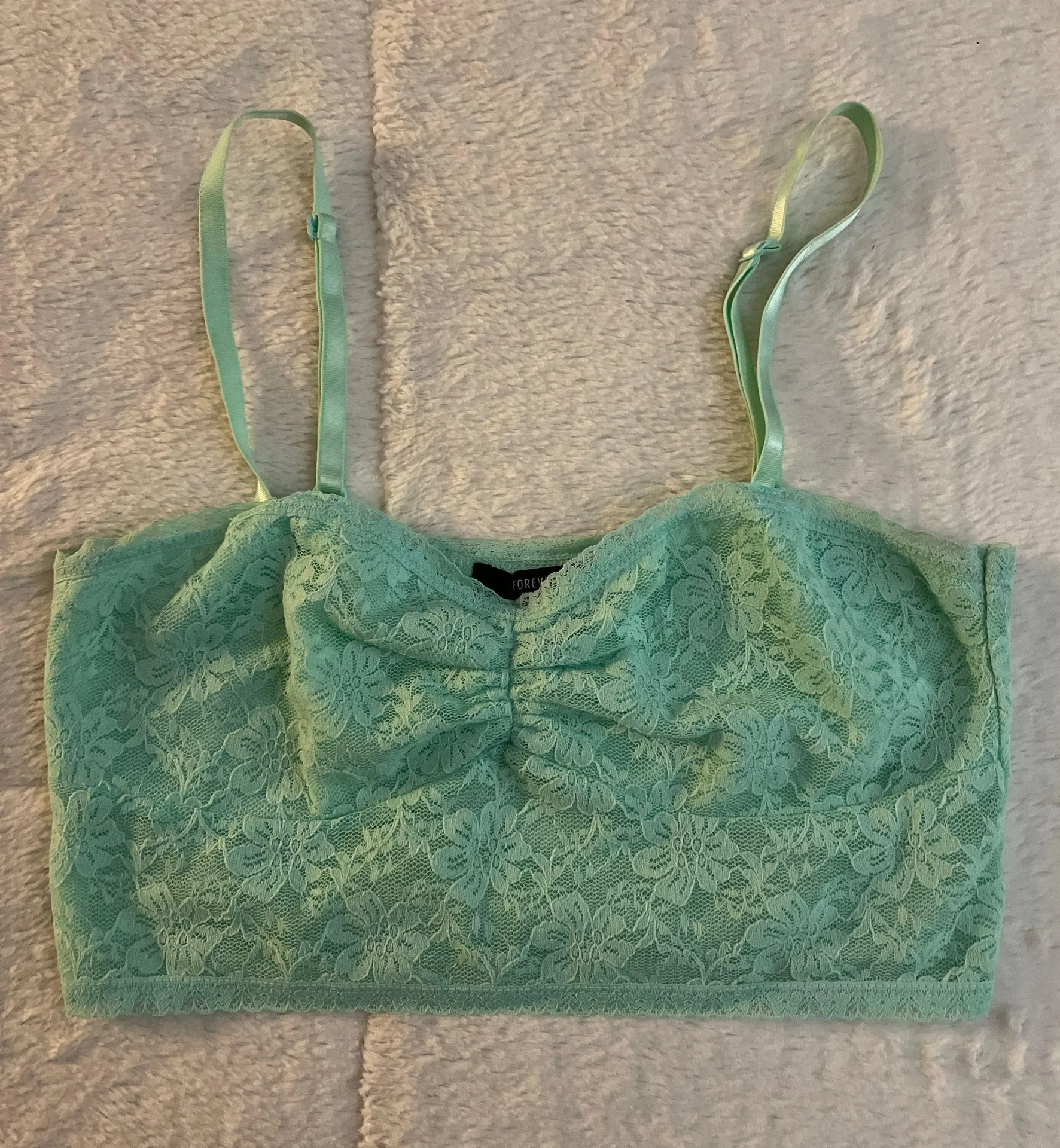 Bright teal lace bralette. Only worn a few times. Very comfortable. Size medium