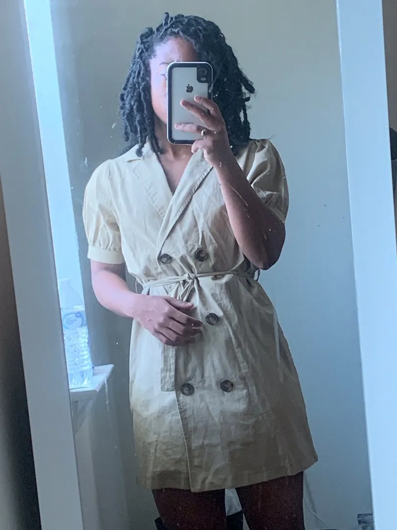 Brown puff sleeve (short sleeved) tuxedo-like dress Size m