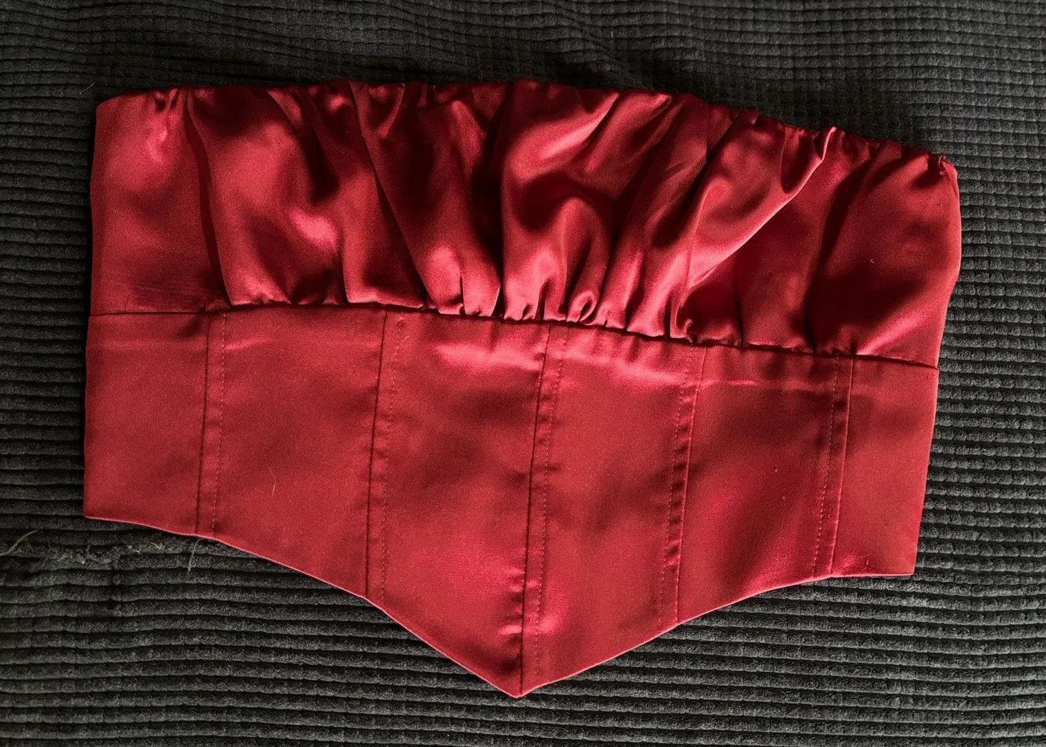 This Forever 21 Burgundy Satin Corset Top is a strapless top with a sweetheart neckline and a zipper... Show more