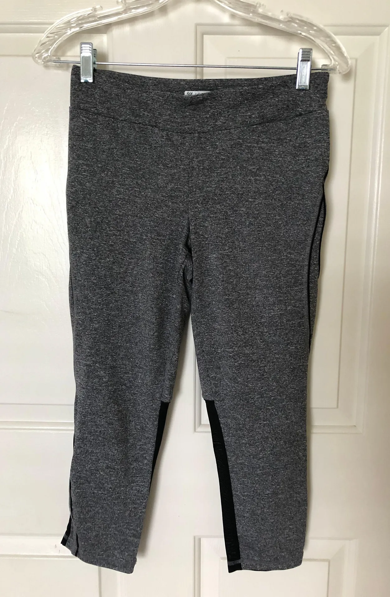 Mid- Rise Capri Leggings with Mesh Siding Goes about mid calf on me. No flaws.
