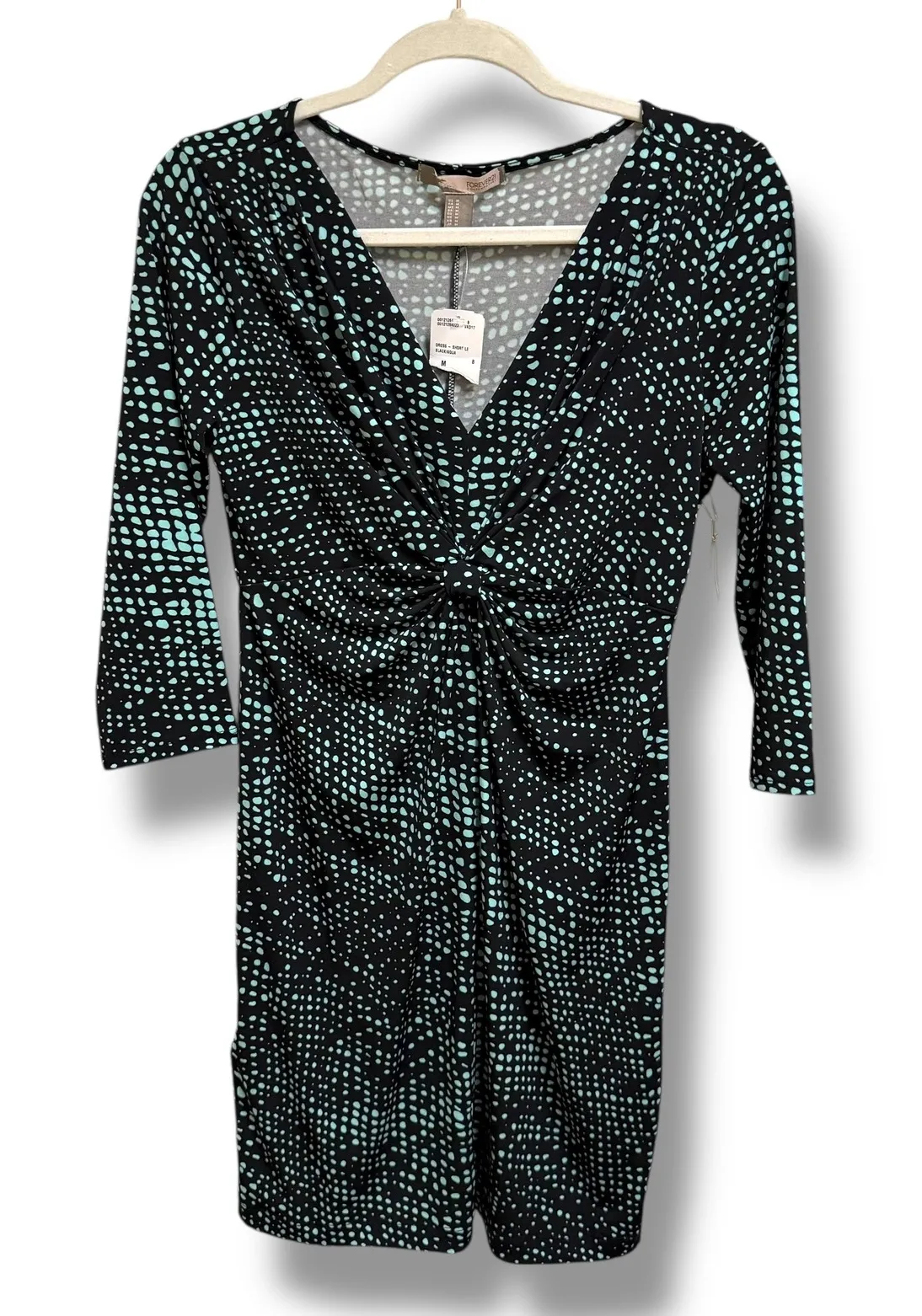 A black and aqua dot print midi dress from Forever 21 Contemporary. This dress features a flattering... Show more