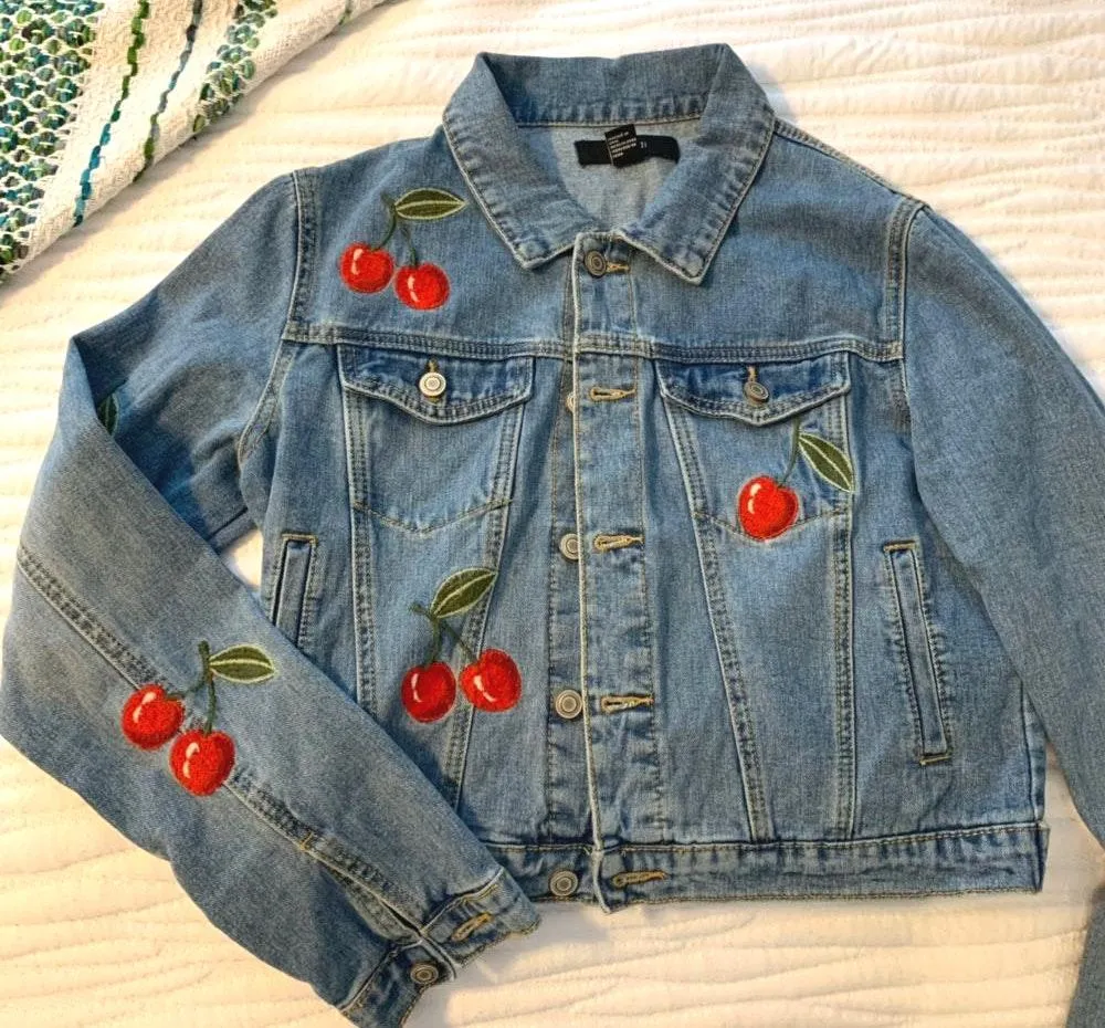 Custom denim jacket! Bought from Forever 21 and embroidered the cherries on! Unique piece that no on... Show more